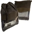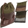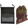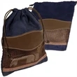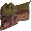An Exclusive! Drawstring pouch made of faux suede with glove durahide trim and houndstooth lining. Deboss on durahide Leather strip.