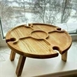 Designed for classy drinking for outdoor lovers who will be seduced by the ease of this short table.Outdoor wine table is made of high-quality wood, non-toxic, tasteless, durable, smooth and flat. Portable picnic table,the clever collapsible table is designed to hold all the elements of a classic picnic.Perfect for outdoor wine festivals, family picnics, camping. Your logo is welcome. "