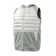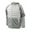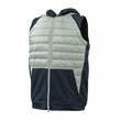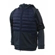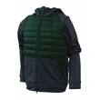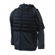 Outshell: 100% nylon, 2.0 ounce. 95% polyester/ 5% span, 8.0 ounce. Filler: 100% polyester, 4.0 ounce. 2-in-1 detachable sleeves full zip jacket with front pockets and hooded. Water resistant. Anti-bacterial. Anti-snag treatment.
