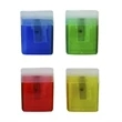 Keep your pencils sharpened and ready to use with this handy promotional pencil sharpener. It is pocket-sized and convenient, taking up little space on desks or in pencil pouches. Its flip-top design allows shavings to be easily emptied and cleaned out. Great for students, office employees, artists and more! Stores pencil shavings in bottom. Flip top design. Material: PS(body), PP(cap).