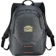 The eleven™ Motion 15" Computer Backpack features an exclusive design that packs all of the organization you could ever need in a compact design without sacrificing functionality and comfort. Features a padded laptop compartment, a lined pocket for your tablet or eReader and dedicated pockets for things such as cords in addition to the large main compartment. Side grab handle makes getting in and out of a car or off a plane easier. Features a quick access pocket for your phone, passport or other valuables. Padded back and straps for extra comfort. Back panel designed to slip over trolley handles. Signature eleven lining and hardware. Free run charges for embroidery up to 10,000 stitches.